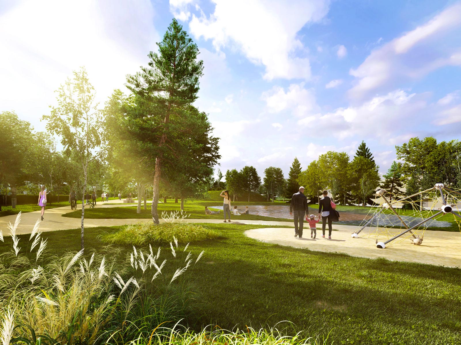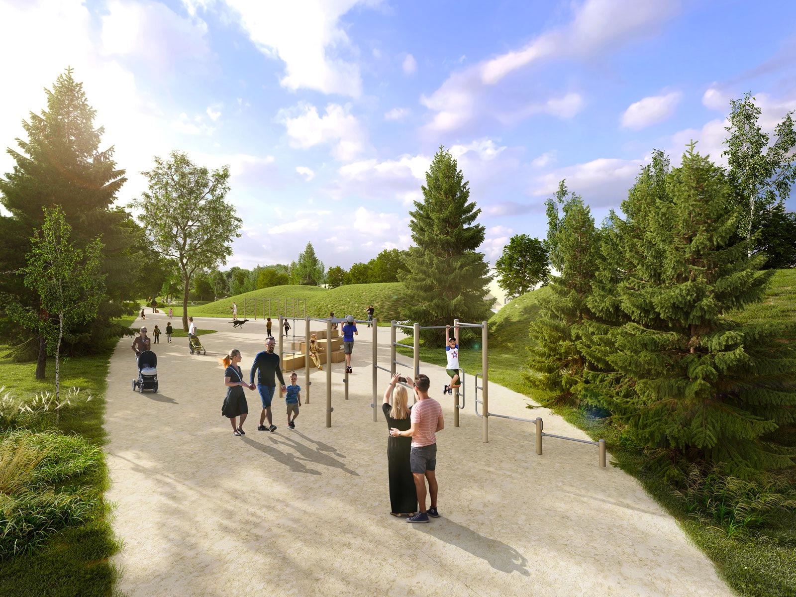 Přilehlý park o velikosti Žižkových sadů se stane místem pro setkávání rodin, oddych a sport. Jen kousek od centra Hradce Králové vznikne odpočinková zóna, která v této lokalitě doposud scházela. Velkorysý městský park, jehož zeleň byla projektována s vazbou na okolní krajinu, nabídne nejenom příjemné posezení a vodní plochy v podobě jezírek, ale i sportovní a herní prvky, jejichž výběr může svým hlasováním ovlivnit veřejnost.